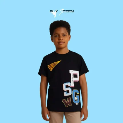 Kids’ Peanuts Logo Patch T-Shirt – Black Graphic Tee with Cartoon Accents