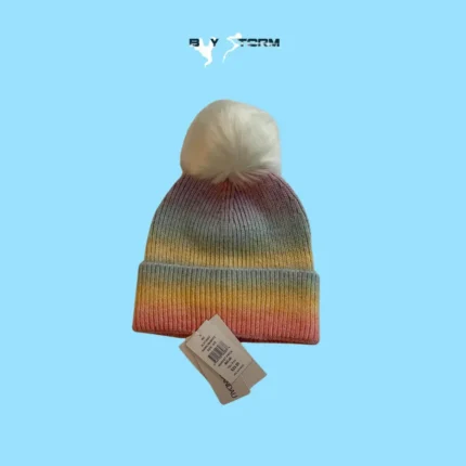 Girls’ Gradient Knit Beanie with Faux Fur Pom – Soft Winter Hat