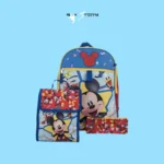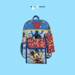 • Complete 4-piece Disney character school essentials set • Spacious backpack with iconic Mickey Mouse ears and colorful character artwork • Matching lunch bag and pencil case with vibrant red Disney design • Durable construction with comfortable blue padded straps • Bright blue and red color scheme with beloved Disney characters • Perfect for school adventures, Disney magic, or organized enchanted learning